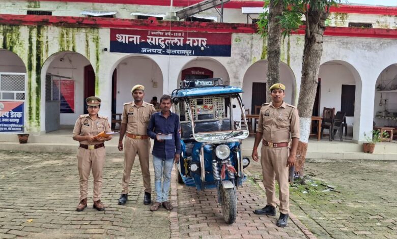 ई-रिक्शा चोरी का खुलासा: सादुल्लानगर पुलिस ने अभियुक्त को किया गिरफ्तार, चोरी किया वाहन बरामद